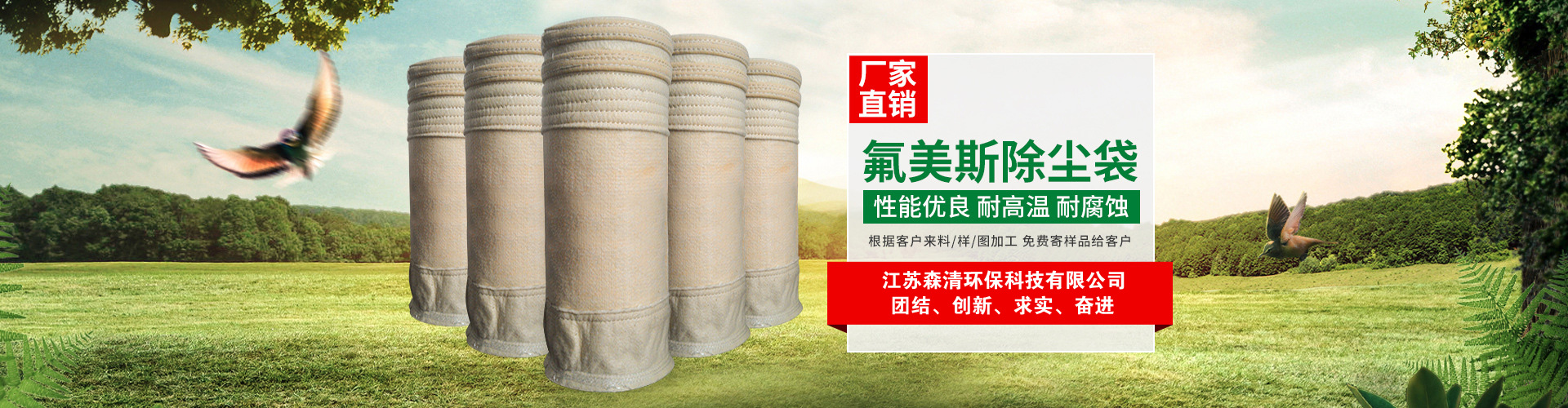 江蘇森清環(huán)保科技有限公司位于蘇北平原、黃海之濱的江蘇省阜寧經濟開發(fā)區(qū)濾料產業(yè)園,東臨沿海高速、西臨新長鐵路、北枕連云港口、南際鹽城機場,204國道繞廠而過。依托省級經濟開發(fā)區(qū)的優(yōu)勢,以科技創(chuàng)新為先導、現(xiàn)代管理為基礎,企業(yè)發(fā)展蒸蒸日上。 公司主營無堿、中堿玻纖濾袋,PTFE浸漬膨體覆膜(水泥廠窯頭,窯尾專用),無紡高溫、中溫、常溫針刺氈濾袋,濾袋配件等,具有完備的專業(yè)安裝和售后服務體系。 ...